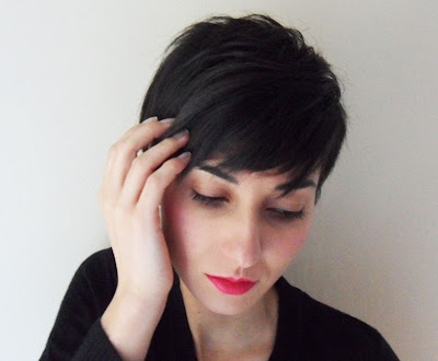 This is a bright pink /fuschia lipstick. I don't have anything else this bright (yet!). When I had long hair, for some reason I couldn't get away with bold lip colours, it didn't suit me. Now I'm really into them! Excuse the bare face but if I wear bright lipsticks with lots of other make-up, I end up looking like a clown.